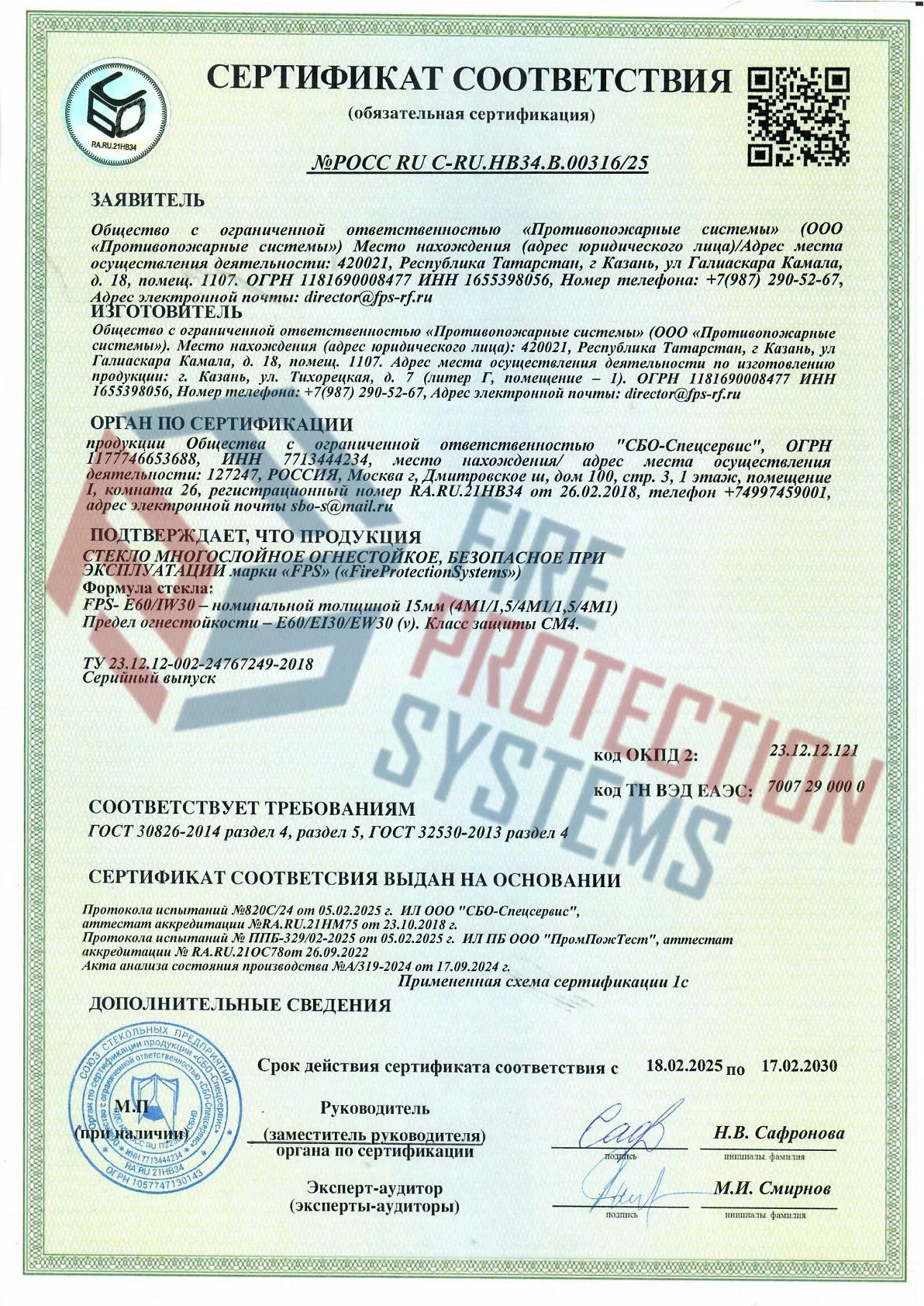 В зависимости от требований пожарной безопасности объекта, данные конструкции выпускаются с различными классами огнестойкости: базовые модели E15, E30 и E60 гарантируют целостность и теплоизоляцию в течение 15, 30 и 60 минут соответственно при воздействии открытого пламени.